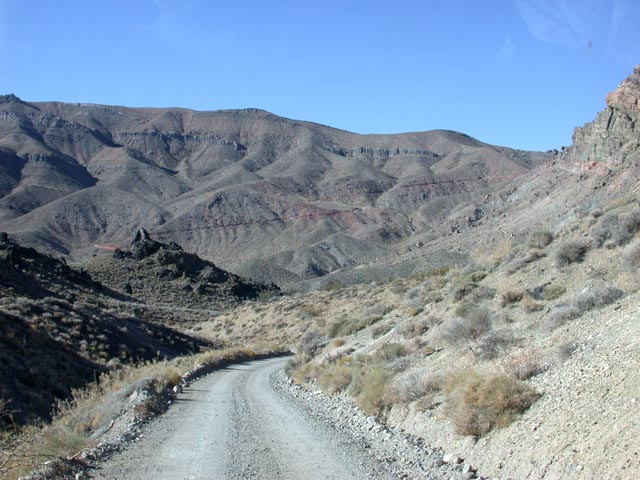 | The Slate Range road climbing up towards Manly Pass. |